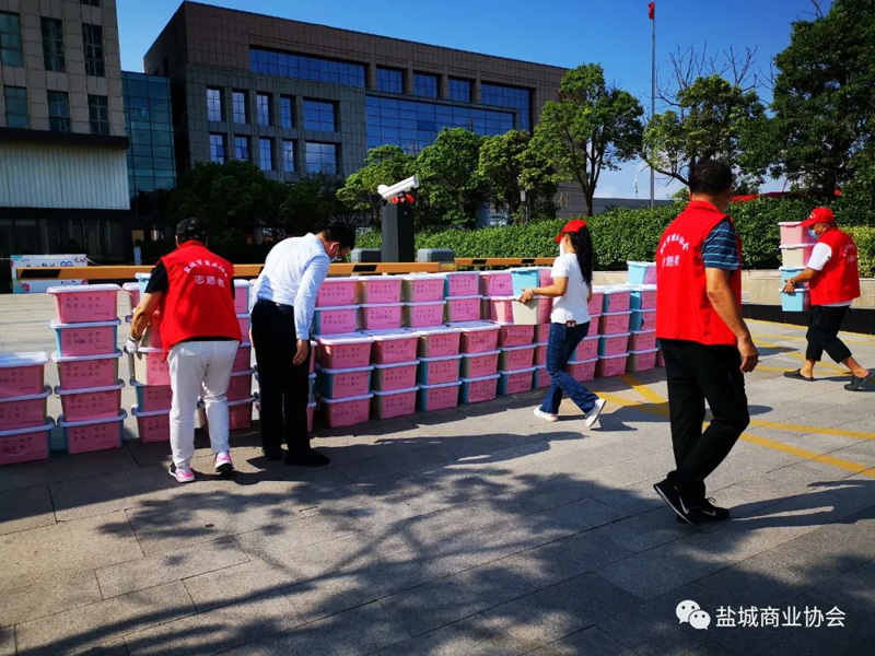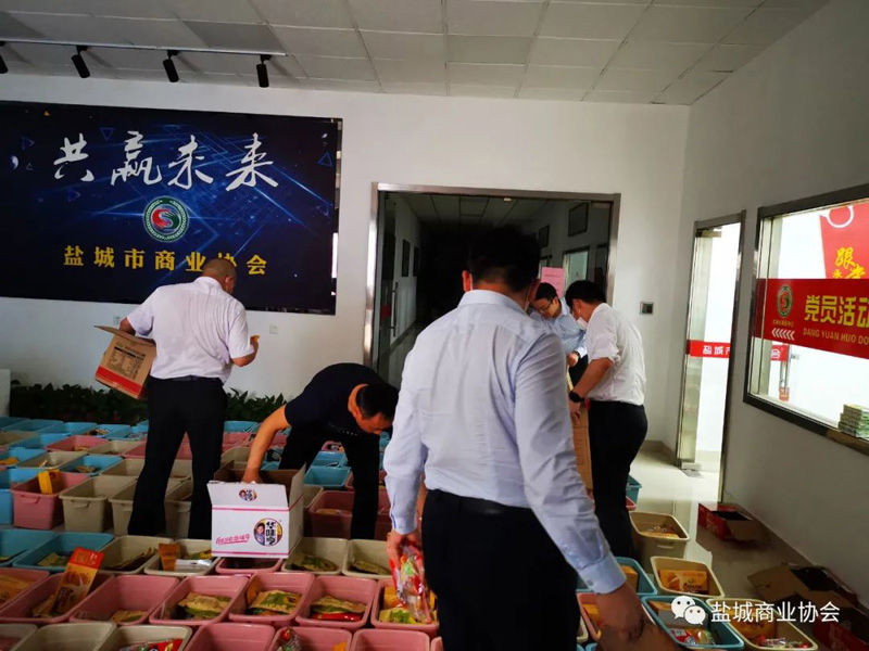 今天,盐城市商业协会组织近20名志愿者忙碌了一整天,采购150份休闲食品,每份包含洽洽每日坚果、花生、瓜子;盼盼手撕面包,黄浦和记芝麻薄脆片;劲仔小鱼,喜盈盈八宝粥,达利园好吃点饼干,山药片等,只为给正在盐城酒店集中隔离的扬州人民送上一份小小的惊喜,希望他们在单调的隔离生活中增添些许乐趣。我们想告诉您:“你们在盐城不孤单,我们一起加油!”