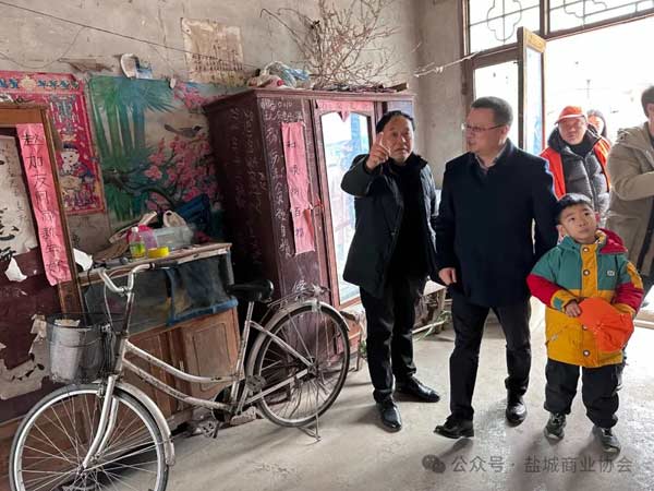 1月24日上午,盐城市商业协会春节前集中对15户困难家庭进行入户送暖慰问活动,其中10户为我协会结对帮促薄弱村——阜宁县罗桥镇凤谷村的困难家庭,另外5户是盐城市区5位未成年学生家庭回访慰问。我协会非常重视本次结对帮促活动。会员们积极报名争做志愿者,虞加军会长亲自带队在阜宁县社会组织工作部部长等多位领导的陪同下慰问阜宁县罗桥镇凤谷村10户困难家庭。此行目的:一、为困难家庭提供丰富的年货,解决眼前困难;二、看看村里有滞销的农产品可以利用我们现有资源帮忙销售;三、了解困难户家庭如有劳动力可以上班的可以提供平台。