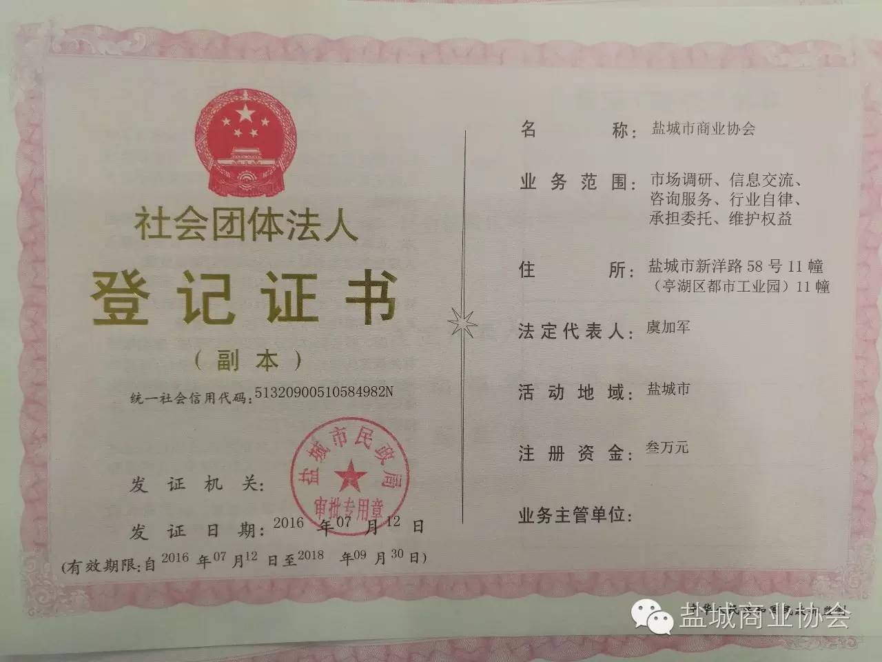 我协会因业务开展需要,经盐城市民政局批准,自2016年7月12日起,协会名称由“盐城市商业供销行业协会”正式变更为“盐城市商业协会” !