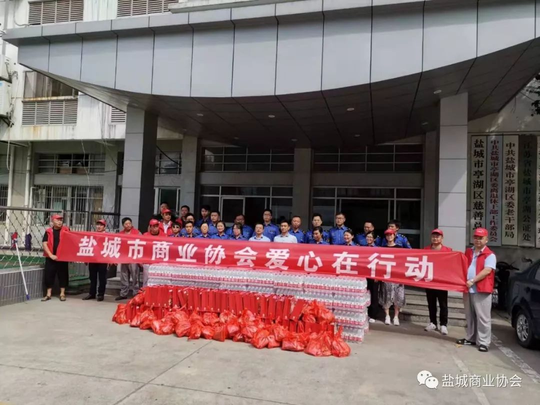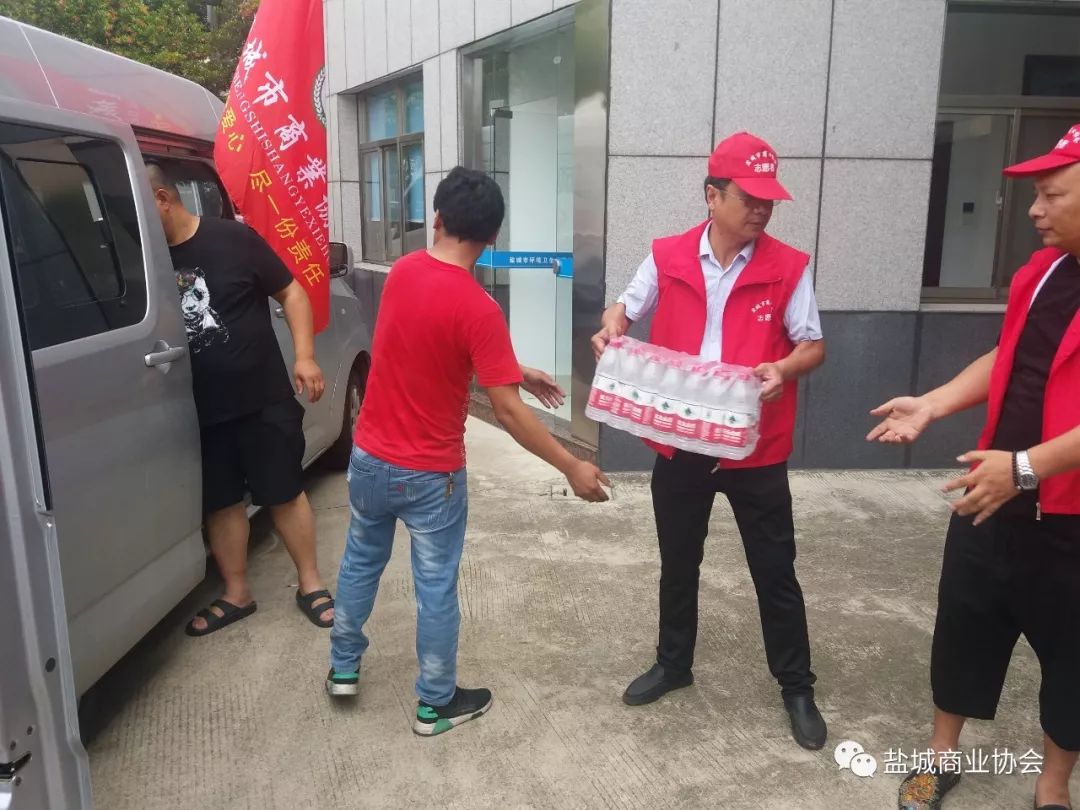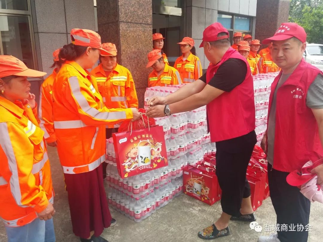 8月1日上午,市商业协会多名志愿者来到市环卫处、亭湖区环卫处,给环卫工人们送上矿泉水、洗发水、休闲食品、毛巾等2万余元的物品,给他们带去了夏日的清凉和问候。