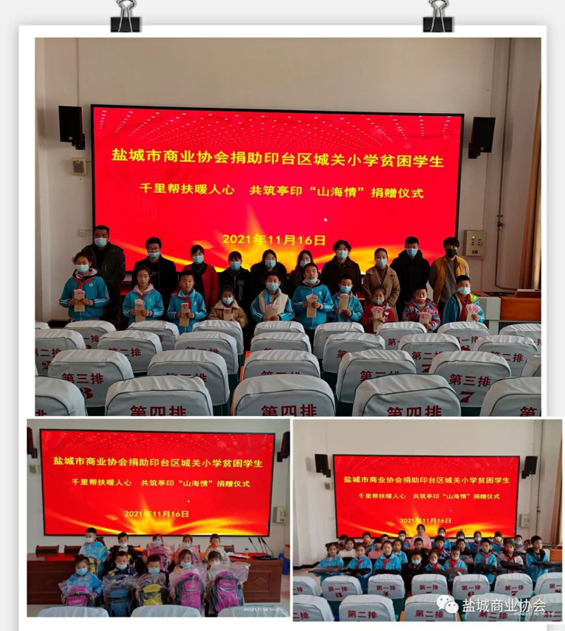 协会向红土镇惠家沟村捐赠乡村振兴示范村帮建资金10万元,向20名困难学生捐赠助学金每人500元和学习用品一套。