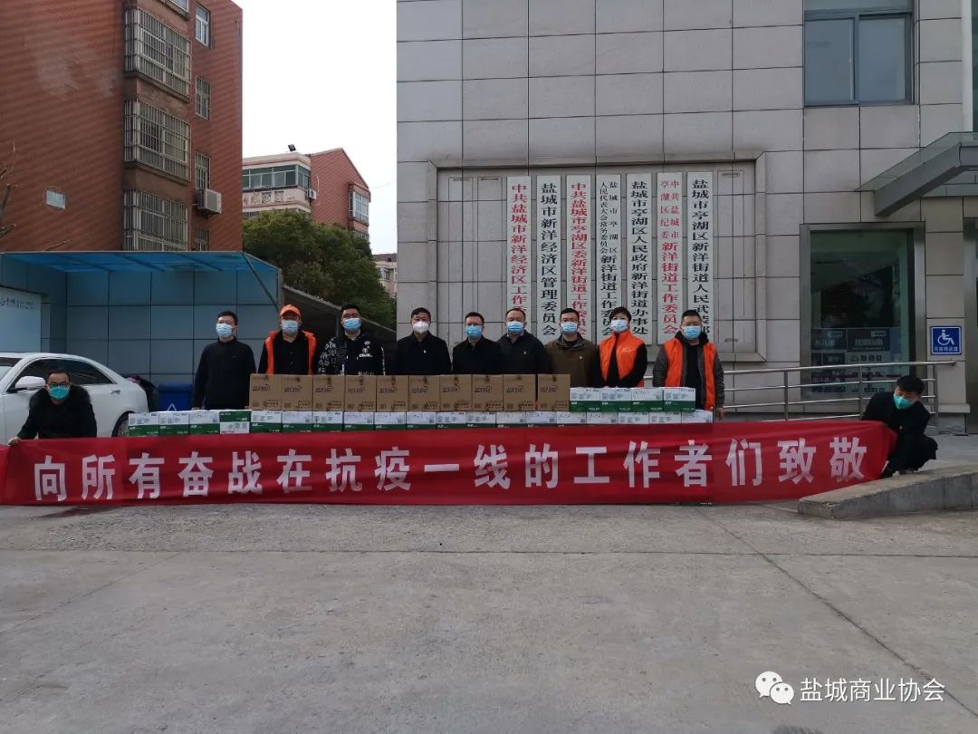 3月22日下午,盐城市商业协会在盐城市亭湖区新洋街道举行一场主题为“向所有奋战在抗疫一线的工作者们致敬!”的公益活动,这也是协会组织的第10场志愿为疫情中的人们提供物资补给的活动。