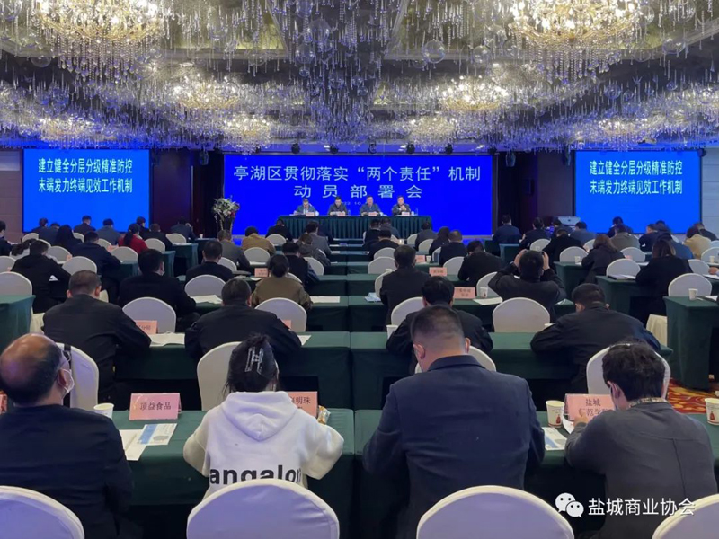10月14日上午十点,亭湖区贯彻落实“两个责任” 机制动员部署会暨省级食品安全示范区迎查冲刺会在江苏宏派国际大酒店隆重举行,出席会议的有:区委区政府各级领导,区职能部门分管负责人和业务科室负责人,各镇(街道)、新洋经济区、农副产品加工交易园区、商业街管委会分管负责人及具体负责人员等。盐城市商业协会虞加军会长参加会议并在大会上作交流发言。