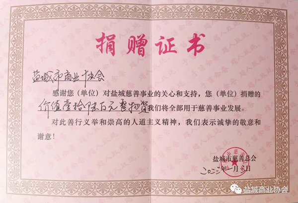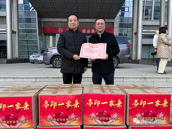 1月3日下午,盐城市商业协会向市慈善总会捐赠420件羽绒服饰,总价值达16万元,这批暖冬物资定向用于关爱陕西省铜川市印台区困难群众。协会会长虞加军、妇联主席蔡晓晴、办公室主任钱科龙,宣传部长邹桂栋、慈善副部长赵玉杰等参加捐赠仪式。