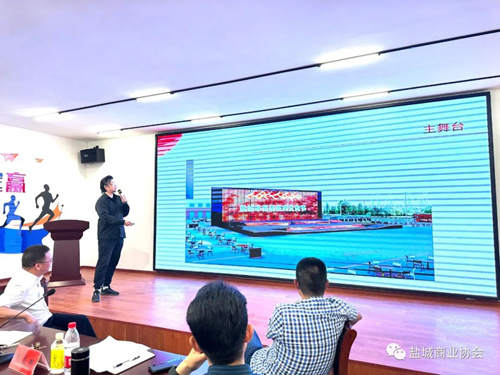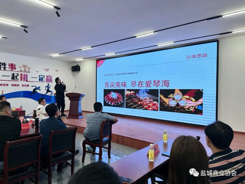 盐城市首届夜宵文化节策划向全体会员分享最新方案。虞会长邀请大家认真观看并提出建议。