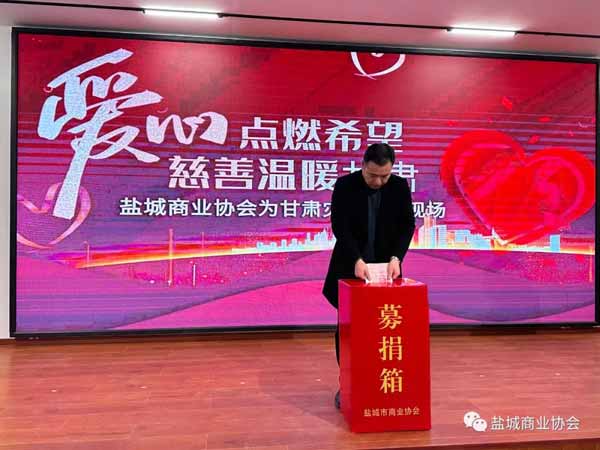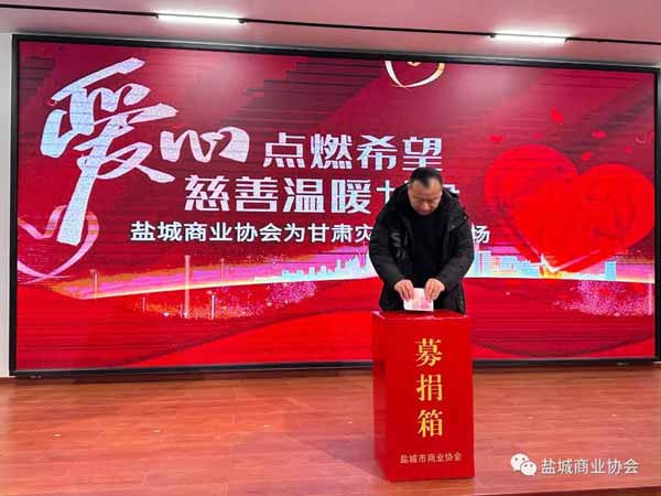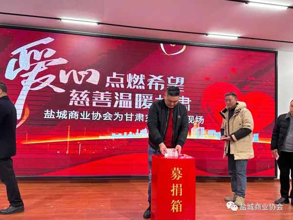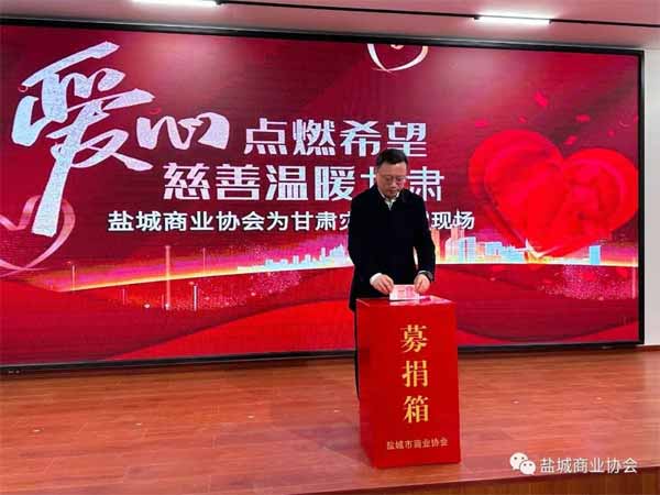 一方有难,八方支援。作为社会的一份子,我们有责任和义务参与到此次救灾活动中。我们积极响应盐城市民政局的号召,第一时间组织全体会员开会,并倡议为灾区提供援助。盐城商业协会一直有扶危济困的传统,作为慈善公益事业先行者,我向全体会员及社会各界爱心人士倡议:让我们迅速行动起来,伸出援手,奉献爱心,发扬中华民族“一方有难,八方支援”的传统美德,慷慨解囊,踊跃捐款捐物,大力支持灾区群众渡过难关。用实际行动诠释无私奉献社会的精神。我希望甘肃在全国人民的支持下,能减轻伤亡,早日恢复正常。在这场严重的地震灾害面前,中国人民的团结、甘肃人民的勇敢、社会各界的责任担当,必将成为中华大地上最亮丽的灯塔。