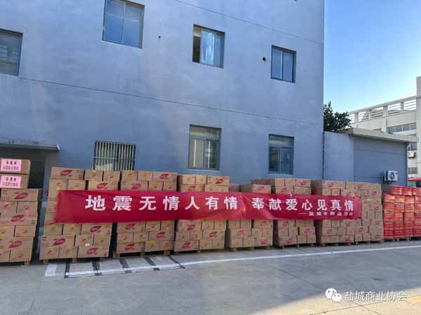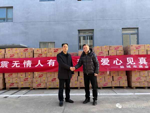 12月22日下午,救灾物资全部准备完毕,在盐城市民政局党委委员、四级调研员申亚林及盐城市民政局社会组织管理局副局长马卫东的见证下将两天内募捐的价值40余万元的物资在亭湖都市创业园内进行了简短的向青甘两省地震灾区捐赠交接仪式。